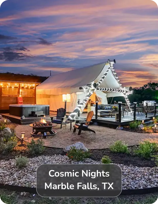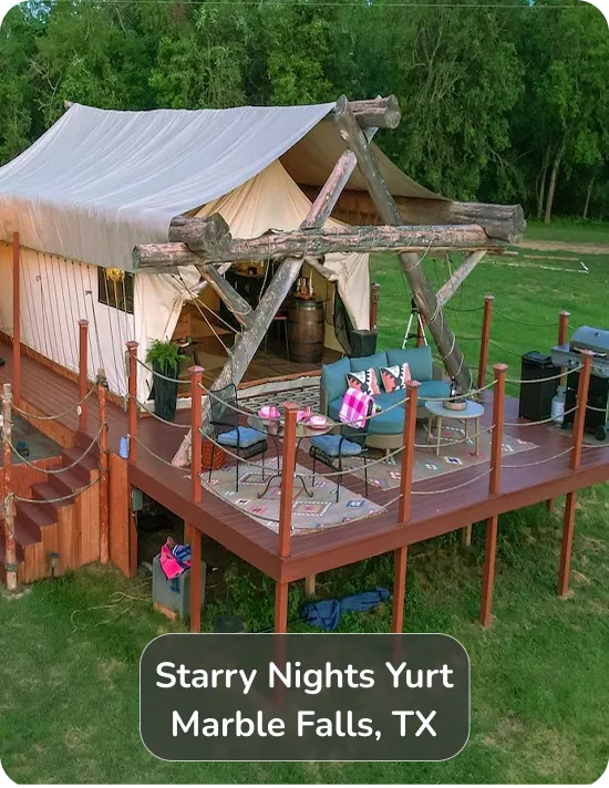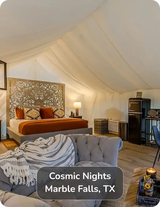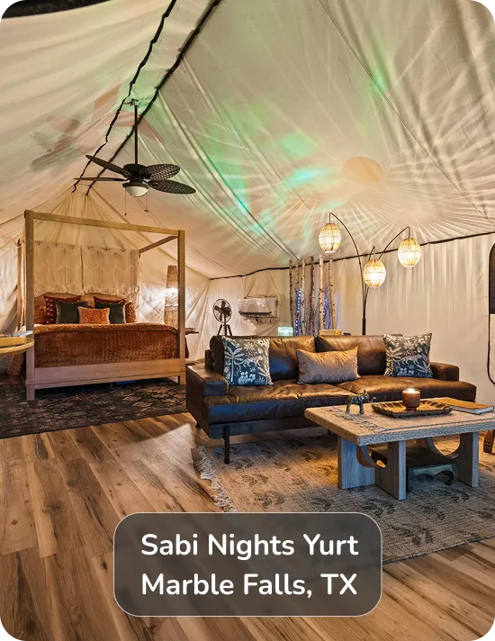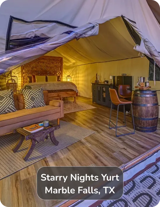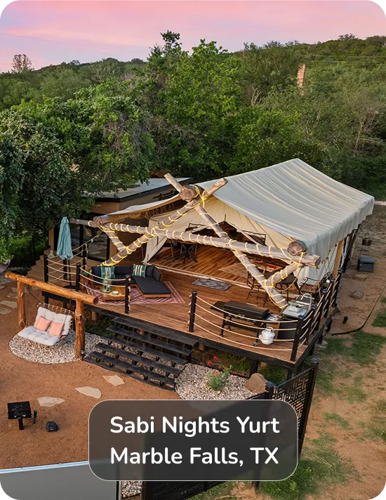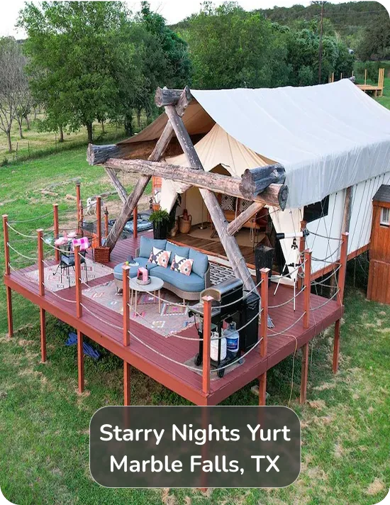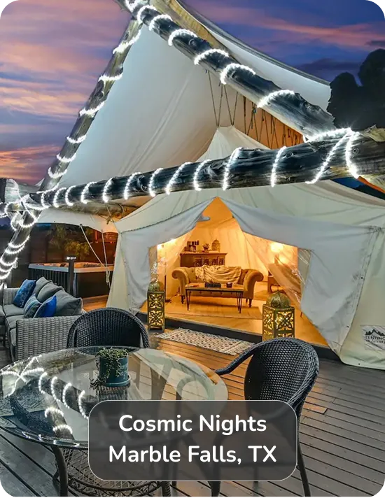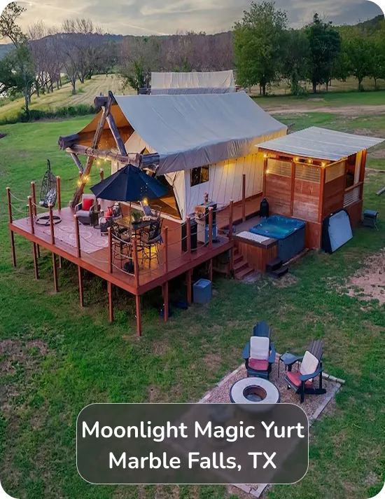 Address: Safari for the Soul Glamping 9109 E. FM 1431, Marble Falls, TX 78654