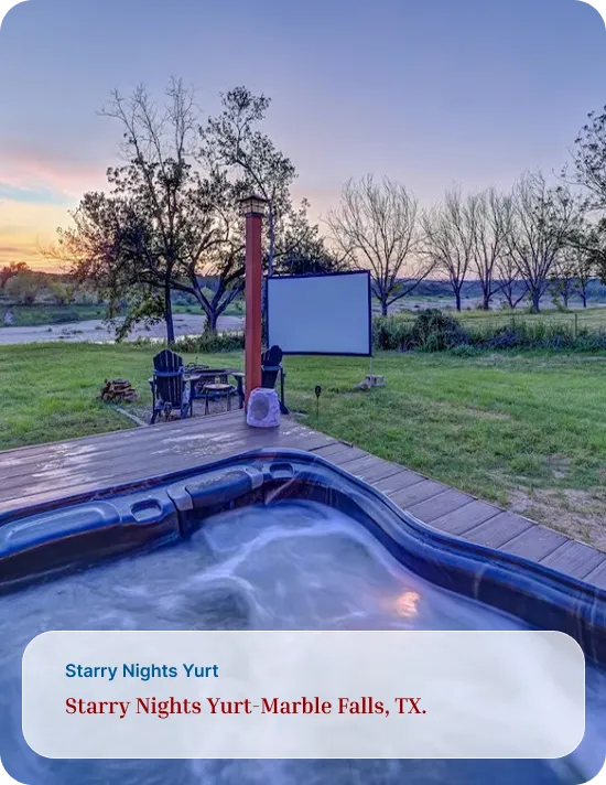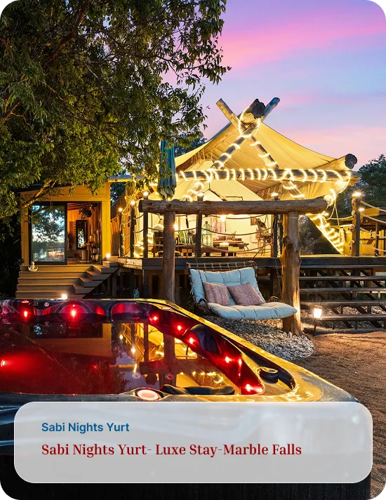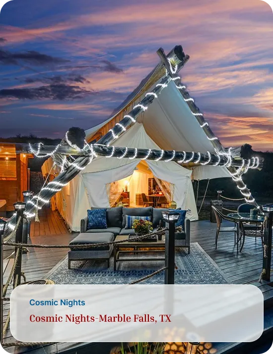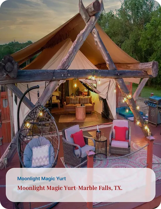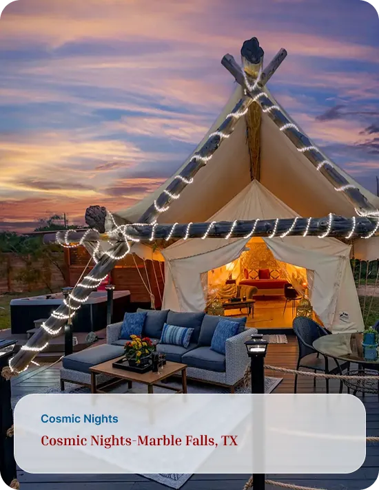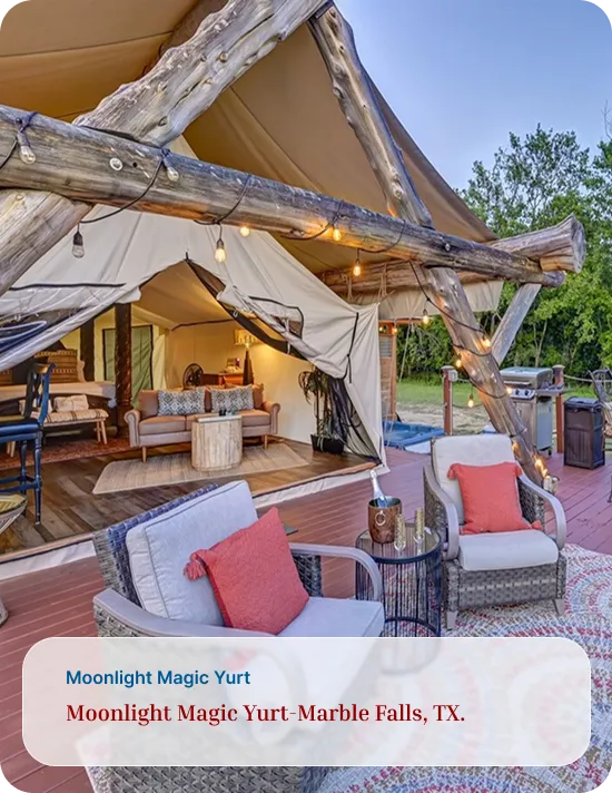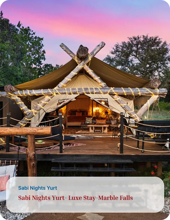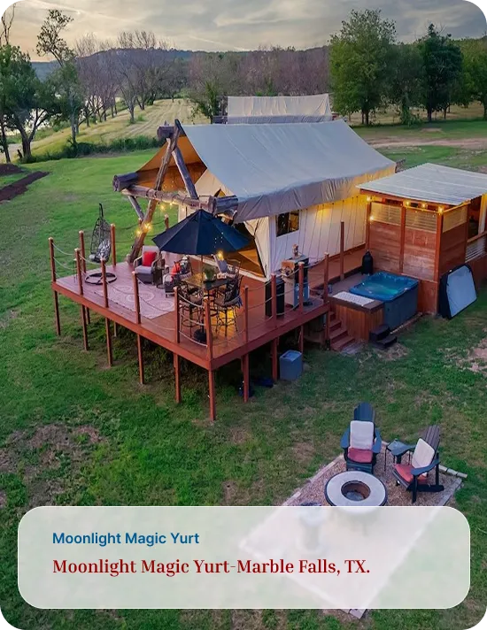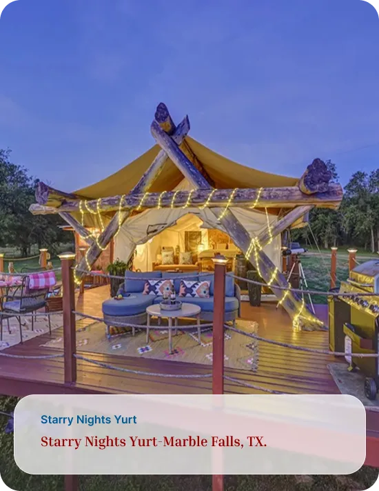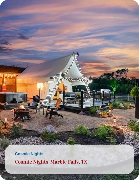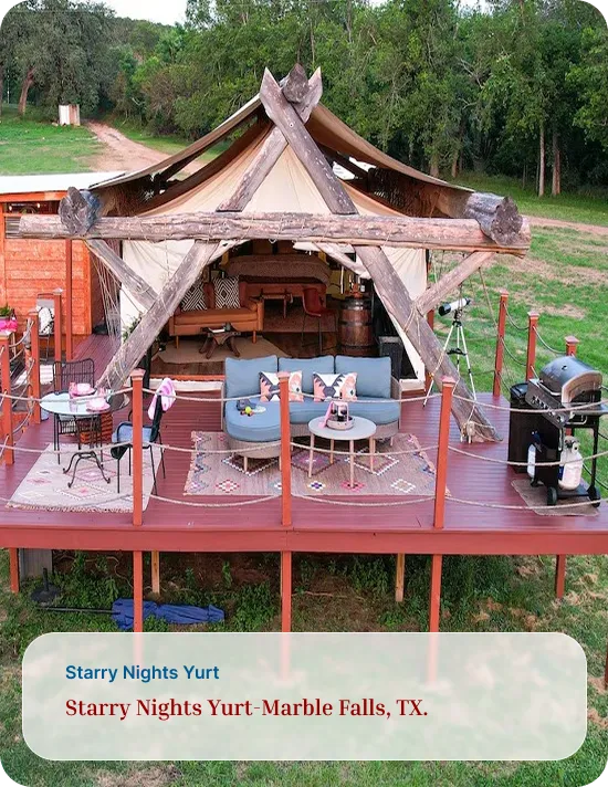 Address: Safari for the Soul Glamping 9109 E. FM 1431, Marble Falls, TX 78654